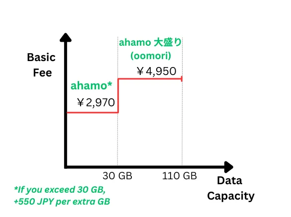 If you need more data, the ahamo oomori plan gives you up to 110 GB of data for 4,950 JPY/month, making it perfect for heavy users.