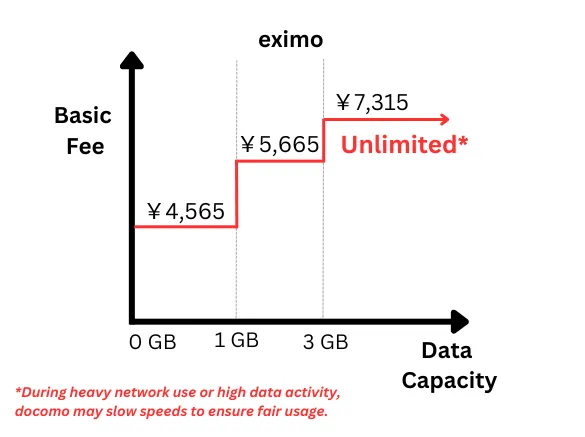 | eximo | 5G/4G | 4,565 to 7,315 JPY | 1GB, 3GB, or Unlimited |