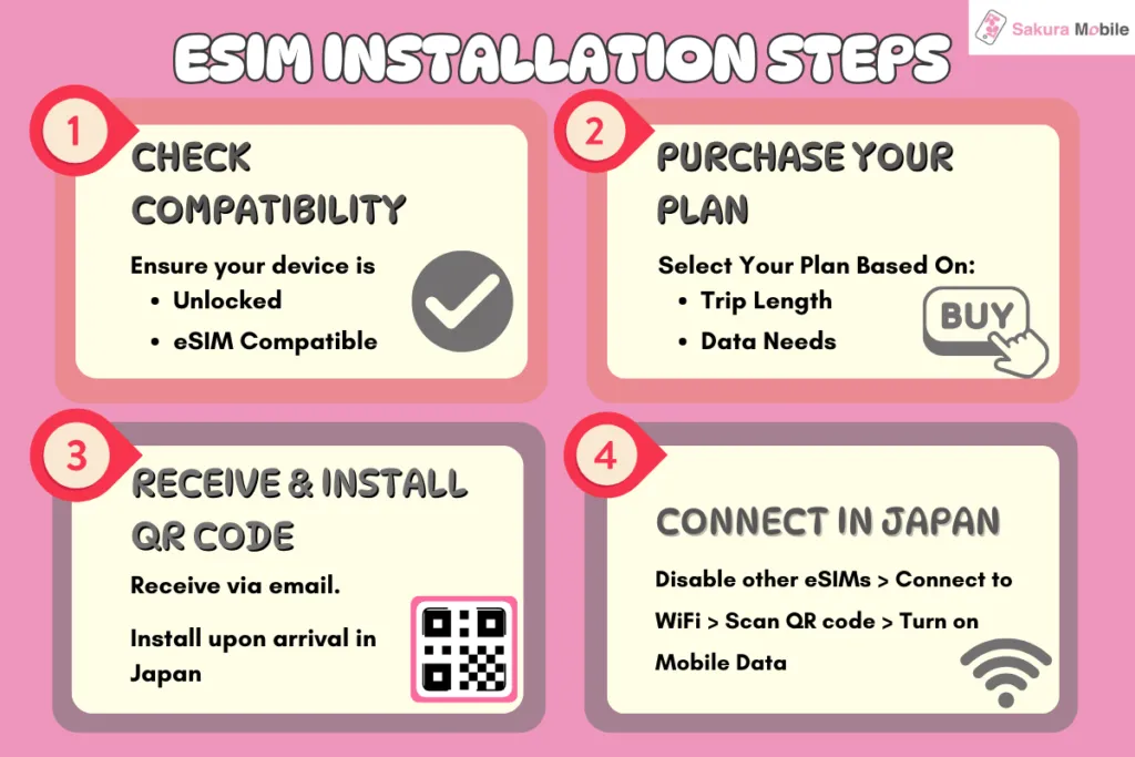 Select your preferred eSIM plan on Sakura Mobile's website. A QR code will be sent to your email shortly after completing the purchase.
