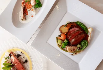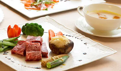 Dinner is prepared by executive chef Pierre Kanazawa, who has won many awards and accoldaes for his amazing skills. If you have any food allergies or restrictions, they ask that you contat them 10 days in advance so that they have time to prepare separate fresh ingredients. We recommend the full French course which changes every season, so you can enjoy delicious foods with in-season tastes. Breakfast is a large buffet with over 60-kinds of foods, including Japanese, Western, and dim sum foods.