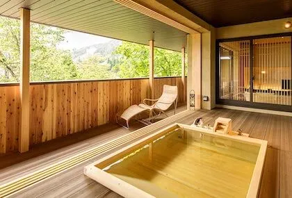We recommend booking one of the rooms that have a private terrace open-air onsen attached to your room so you can hop in whenever you want. Don't worry if you don't book one of those rooms, as they also have a 24-hour rental private onsen located in a beautiful well-kept garden. They don't have Japanese-style rooms or a public onsen, so try a different hotel if you are searching for a traditional Japanese experience.