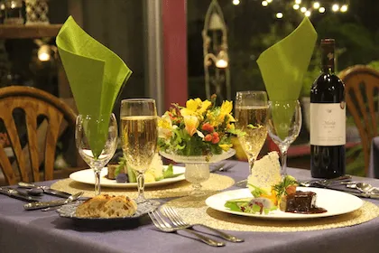 The dinner menu features a variety of different Western-style foods and courses, each prepared with time and care at a professional level. If you visit in the summer, enjoy your breakfast on the garden deck surrounded by warm sunlight, seasonal flowers in bloom, and the sounds of birds. Enjoy freshly baked homemade bread and other delicious seasonal foods for breakfast.