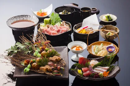 We recommend dining at their kaiseki restaurant Kadan to get a traditional Japanese meal. They serve seasonal kaiseki cuisine in a building built in the early 1900s during the Showa period. They use local ingredients at the peak of their freshness.