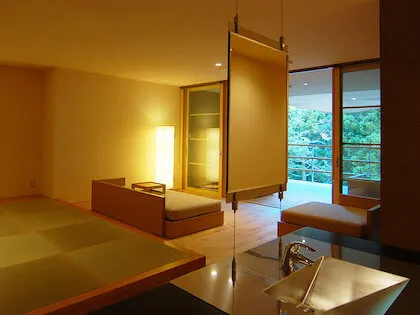 The rooms have tatami mats, Japanese sliding paper doors, and traditional Japanese architecture. The beds are Western-style, great for if you have trouble getting comfortable on the floor. Although small, the rooms are designed to maximize how big they feel. The calm atmosphere will leave you relaxed and even though it's very close to the train station, it's very quiet. Some of the rooms have small gardens attached to them, so you can enjoy a surprising amount of greenery.