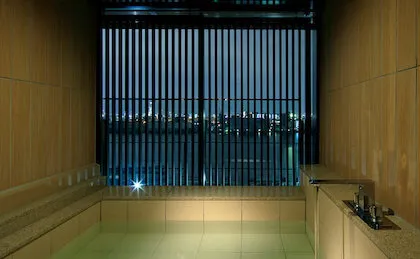 Cyashitsu Ryokan Asakusa is a modern Japanese ryokan in the heart of Tokyo. If you prefer a room with a private onsen attached, book the Ofuro suite. Or if you'd rather, reserve an hour time slot when you check-in for the private onsen. The private rooftop onsen is surrounded by greenery. It's typical of Japanese architecture to blur the lines between indoors and outside, and this onsen in the city will help you relax with nature and they sky.