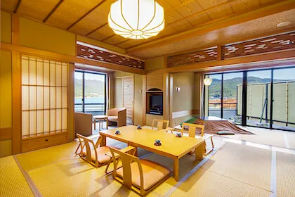 There are various types of rooms, including rooms with open-air onsen overlooking the ocean, rooms with open-air onsen surrounded by forests,and room with open-air onsen that have picturesque views of Japanese mountain ranges.