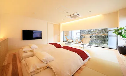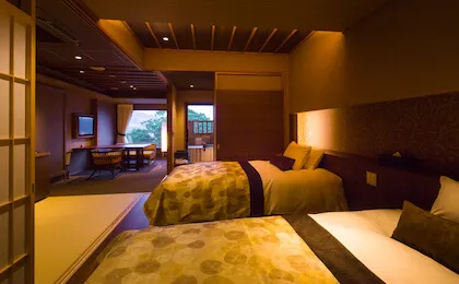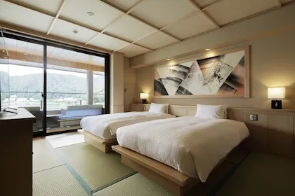 Konansou has 12 different types of rooms with private onsen. All rooms are modern Japanese styel or Japan-western style. You can decide things like the view and the type of beds when booking the room.