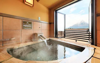 Only the rooms in the "Tenku no Terrace," pictured above, have a private outdoor bath. This room is typically more expensive, but is well worth it, as you can relax at amazing views while taking in Mount Fuji. There are also private onsens for rent, costing 3,000 JPY for 50 minutes.